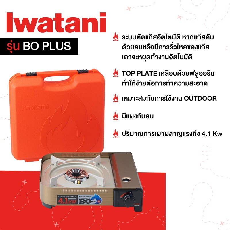 - ออกแบบให้มีแผงกันลมถึง 2 ชั้น รอบด้าน อีกทั้งหัวเตาออกแบบมาให้ไล่ระดับเปลวไฟ เพื่อป้องกันเปลวไฟดับระหว่างการใช้งาน